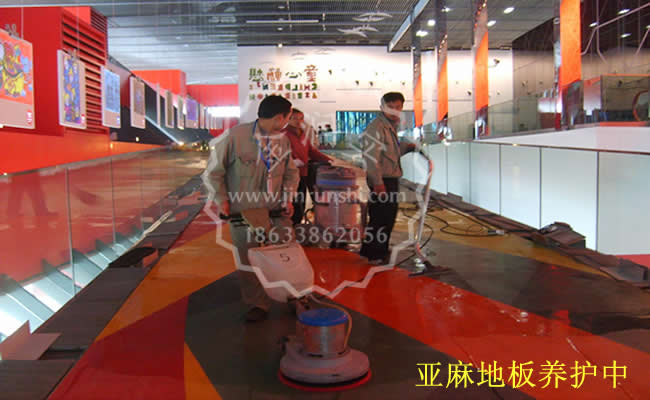 展覽館亞麻地板清洗打蠟